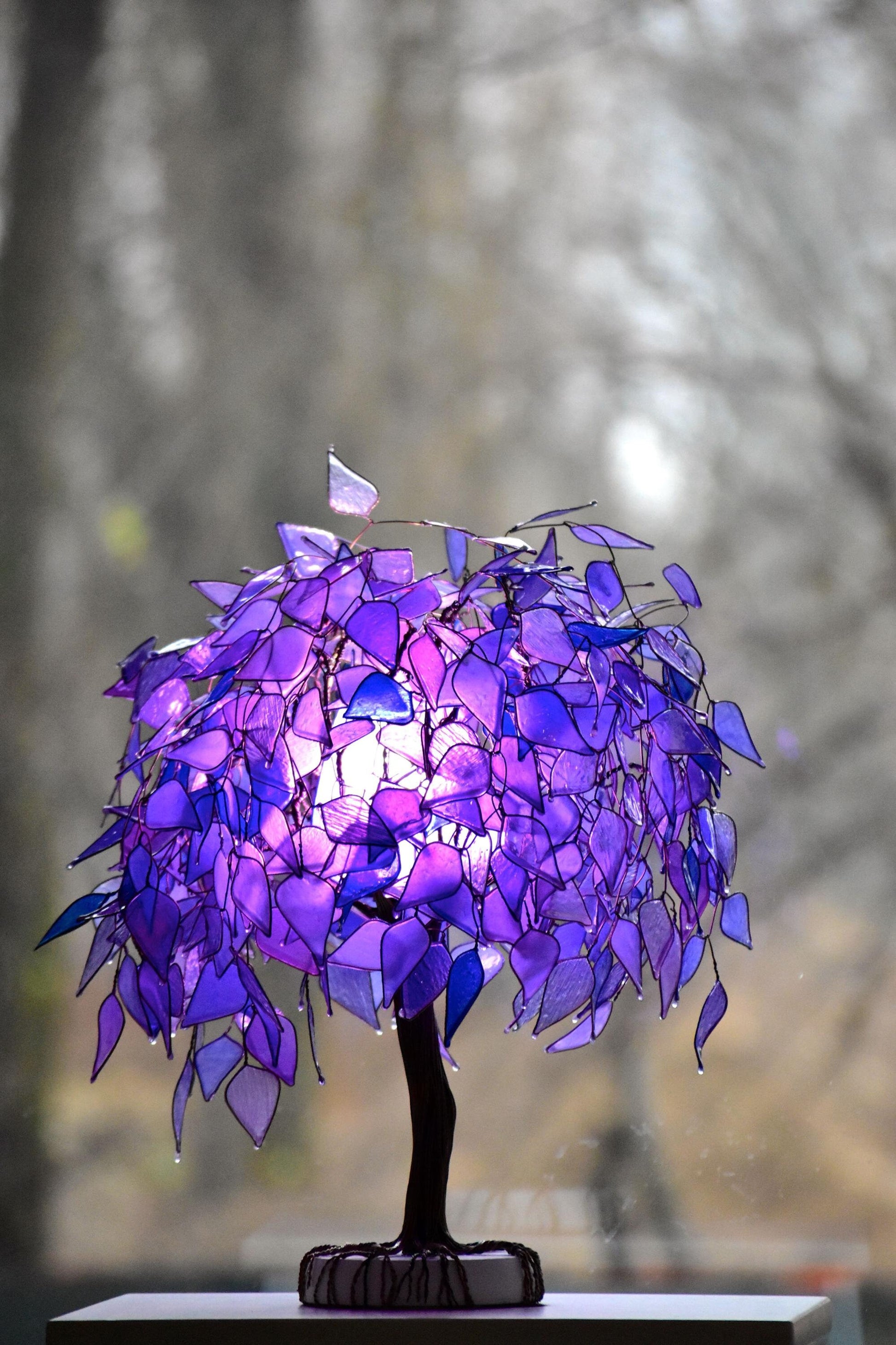 lampada albero viola di jacarandas fatto e dipinto a mano pezzo unico