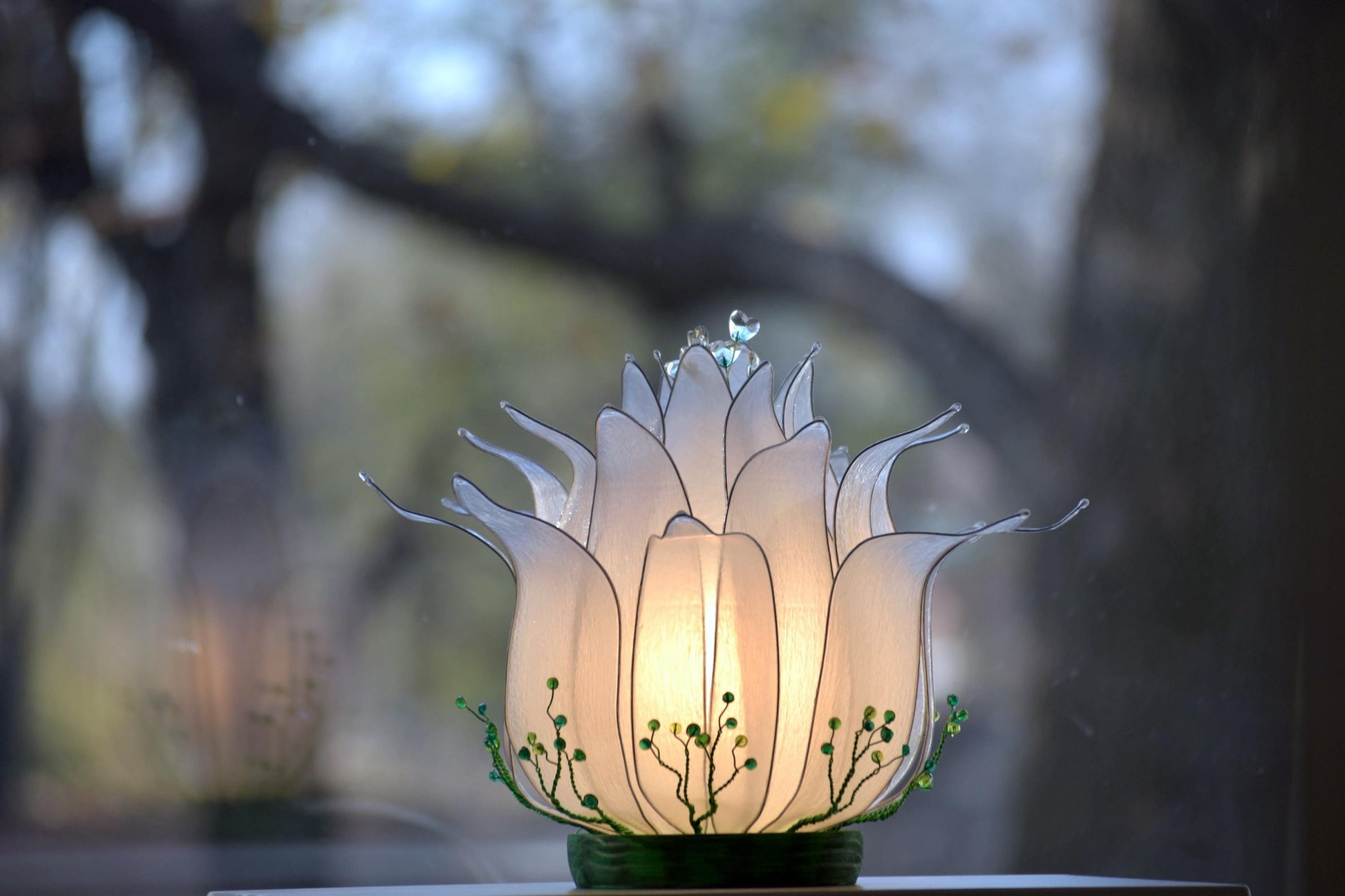 lampada da tavolo a forma di fiore di loto bianco fatta a mano