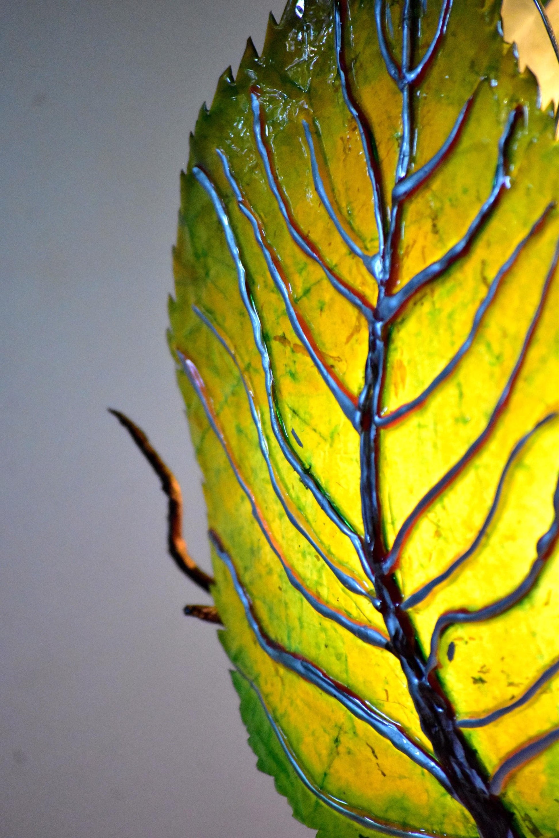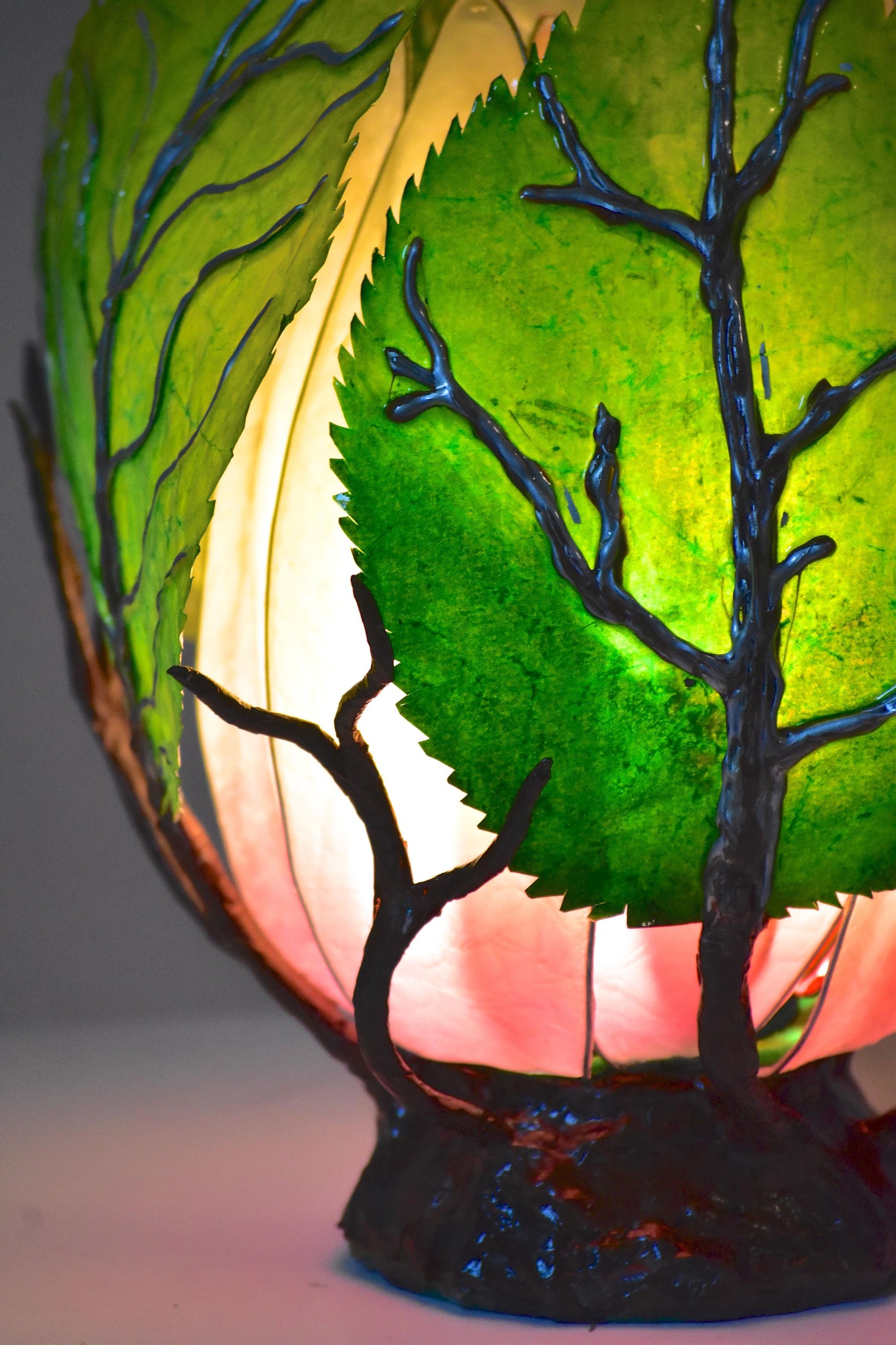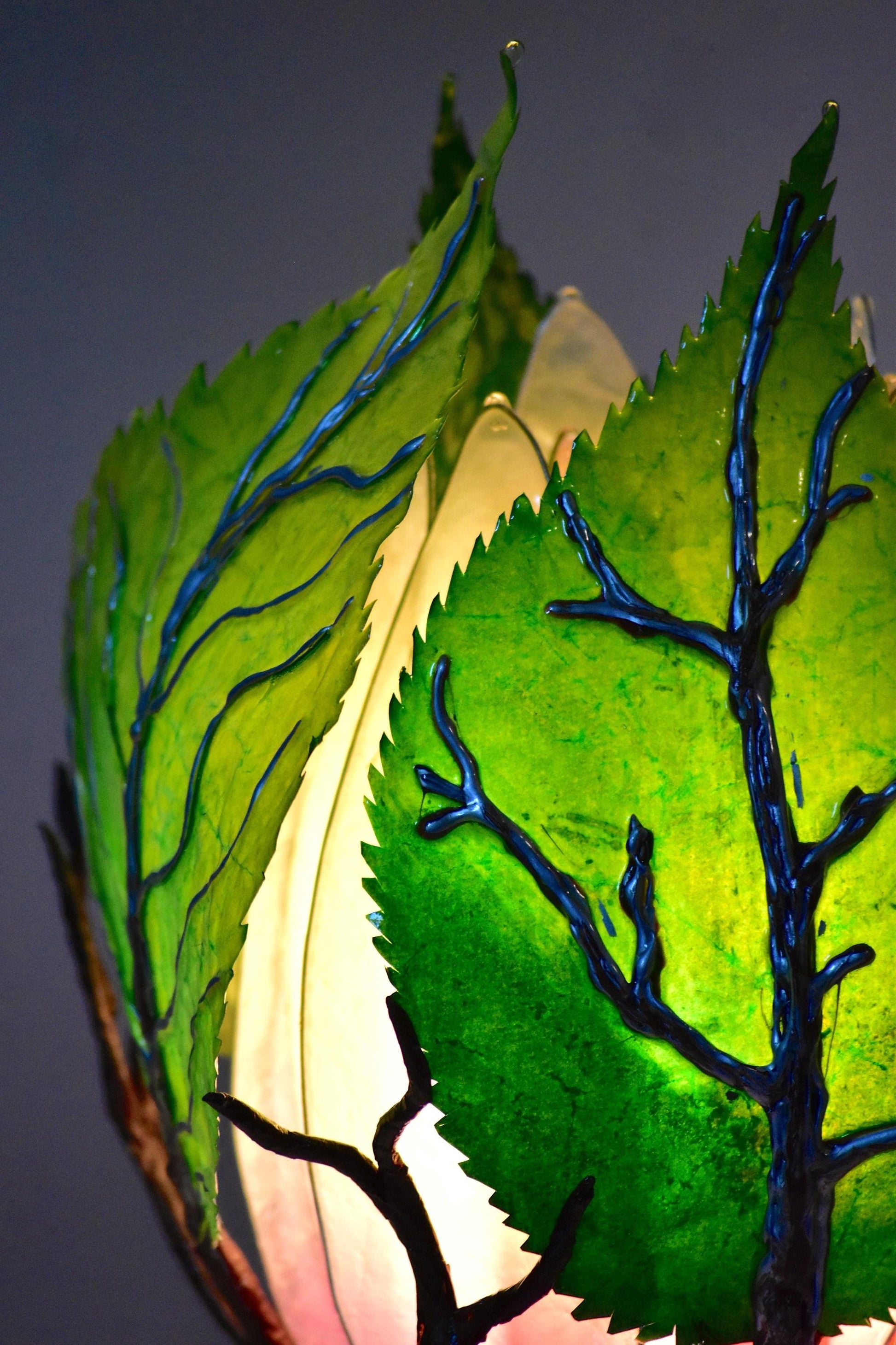 Ho costruito questi rami e queste foglie con molta pazienza, utilizzando filo metallico, resina, diversi tipi di carte, pittura e tanta passione e tempo!