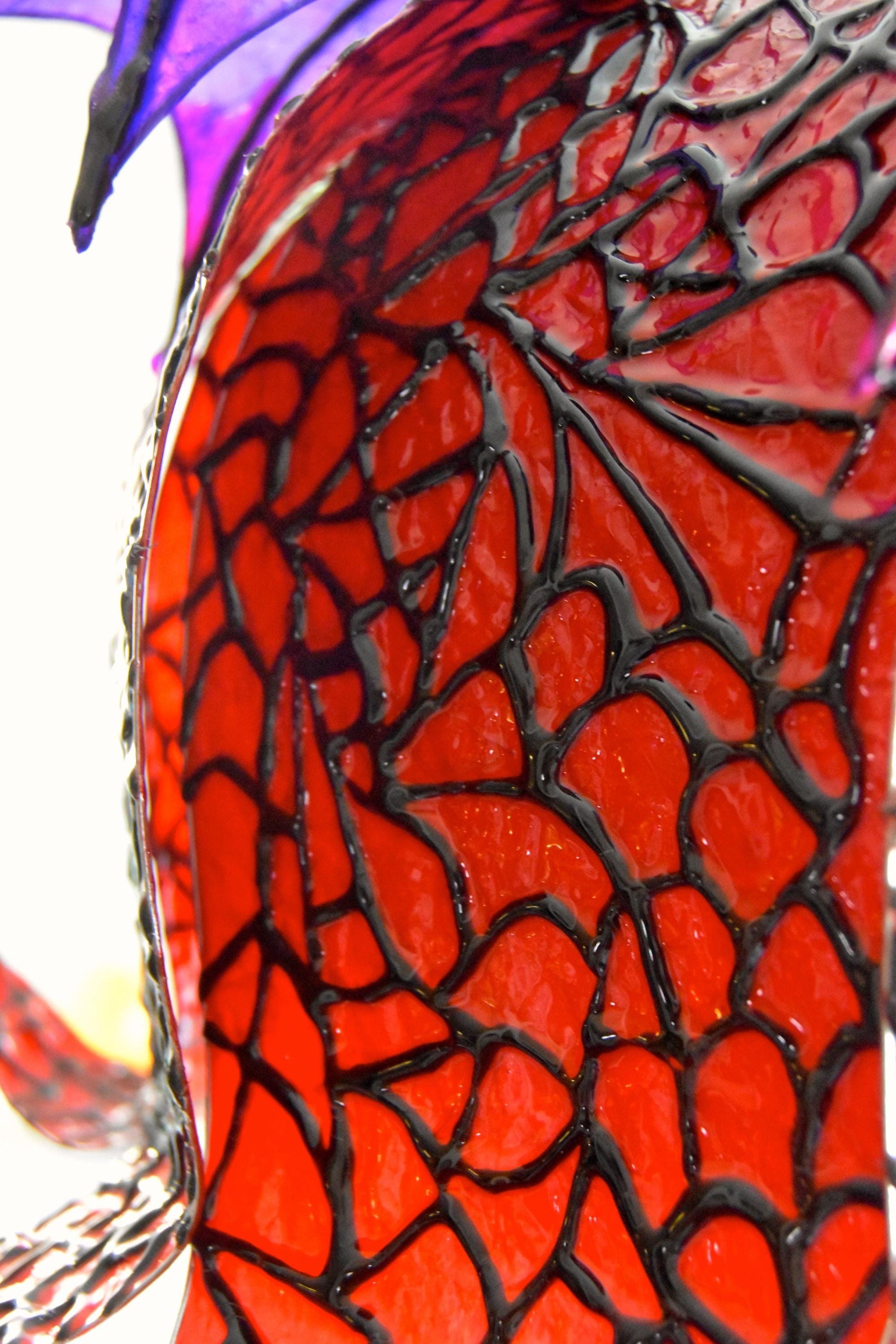 Un fantastico lampadario rosso con ali di pipistrello viola, un pezzo unico in resina per un arredamento in stile gotico moderno fatto e dipinto a mano per illuminare la tua casa, per donare quel tocco in più di altri tempi al tuo ambiente attuale,