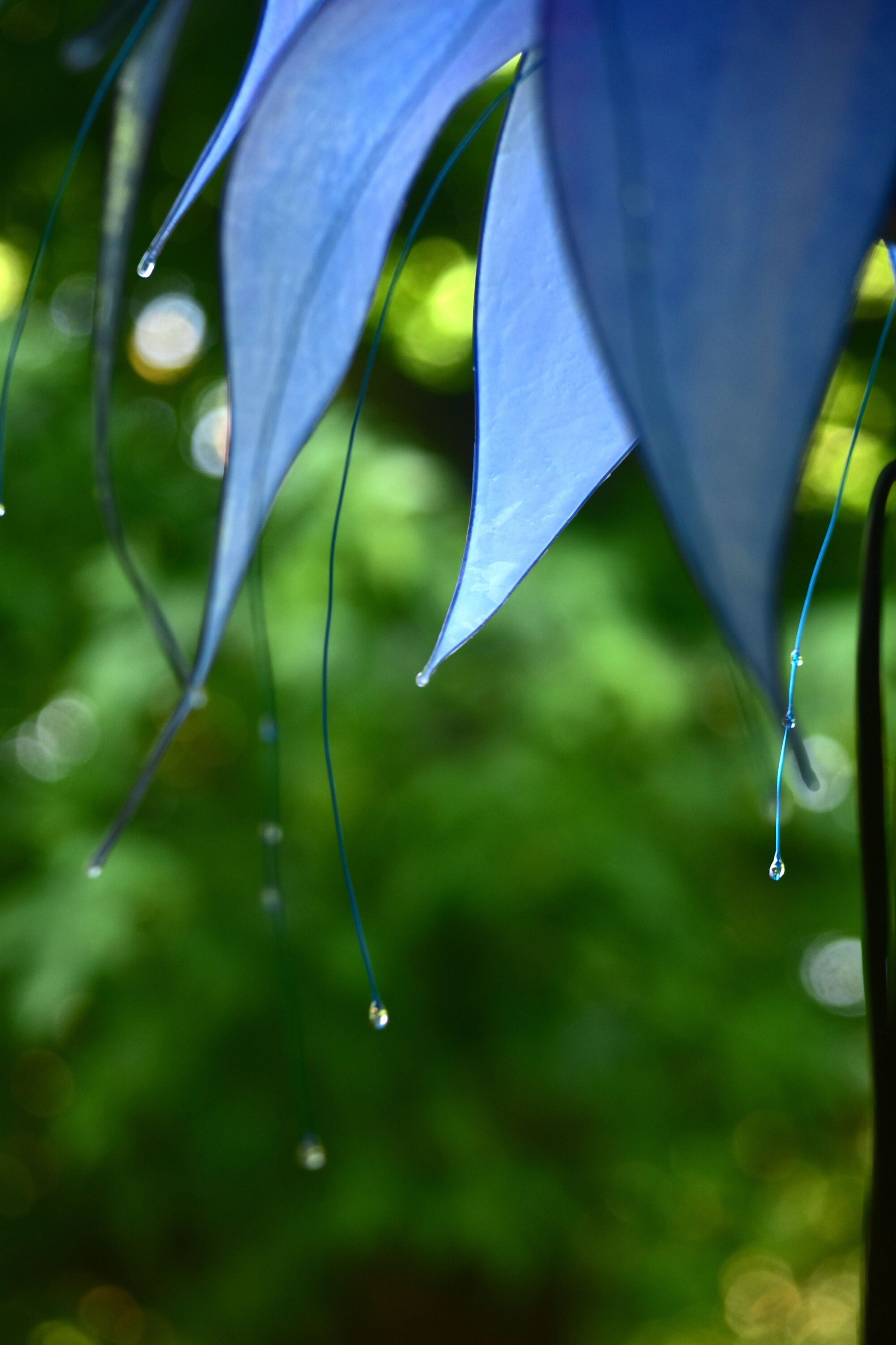Una lampada da terra a forma di fiore fantasioso, gigante, colorato in azzurro e bianco, colori che accolgono il nuovo ciclo della primavera, la rinascita della natura e delle emozioni!